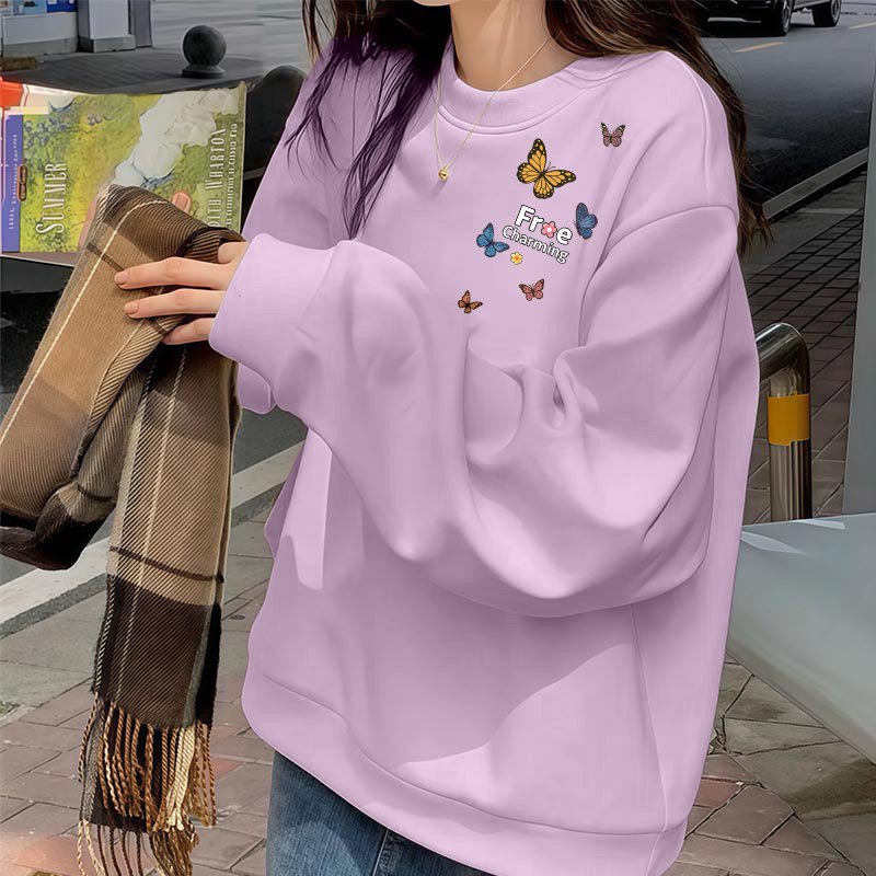 天USPNJ简约休闲风圆领卫衣男女同款宽松百搭长袖上衣2025新款