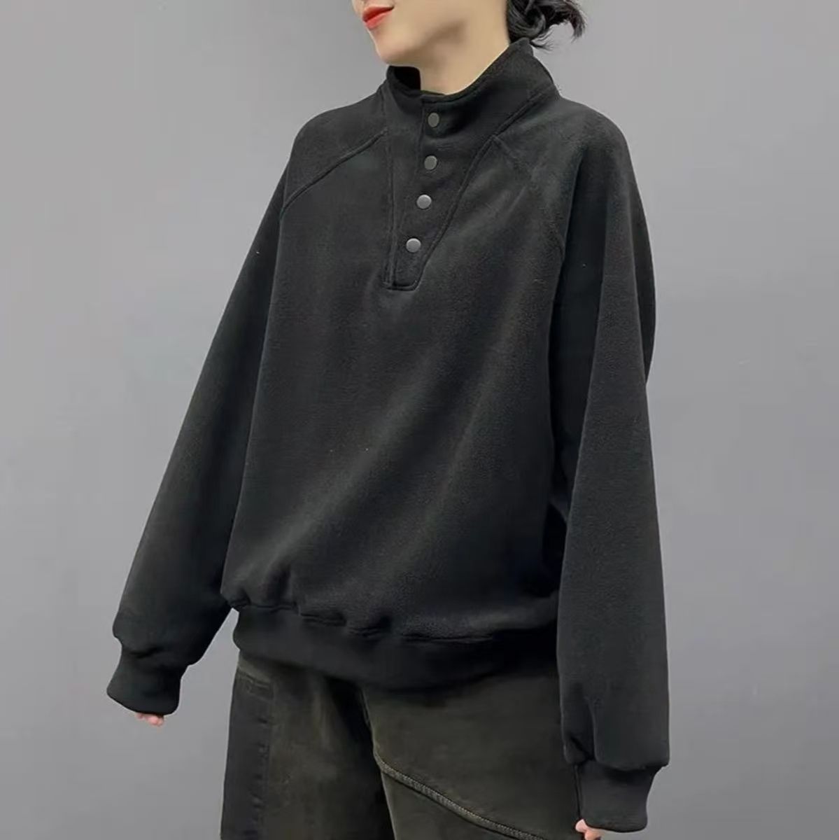 淘宝加大码复古简约风半高领宽松卫衣女长袖通勤百搭松弛感妈妈上衣女
