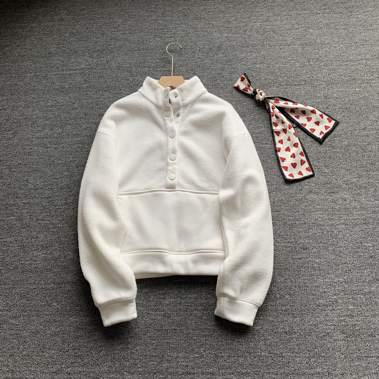 这款外贸女装休闲摇粒绒立领抓绒卫衣,专为秋冬设计,兼具保暖与时尚。采用高品质蓄热摇粒绒面料,柔软亲肤,锁温效果出色,轻松应对寒冷天气。立领设计有效防风,提升颈部保暖度;宽松版型搭配抓绒内里,舒适自在,适合日常通勤、休闲出行等多种场合。外穿内搭皆宜,可单穿作为卫衣外套,亦可搭配外套作内搭,层次感十足。多色可选,简约百搭,轻松打造秋冬温暖造型。无论是搭配牛仔裤还是休闲裤,都能展现随性自然的时尚风格,是秋冬衣橱的必备单品。