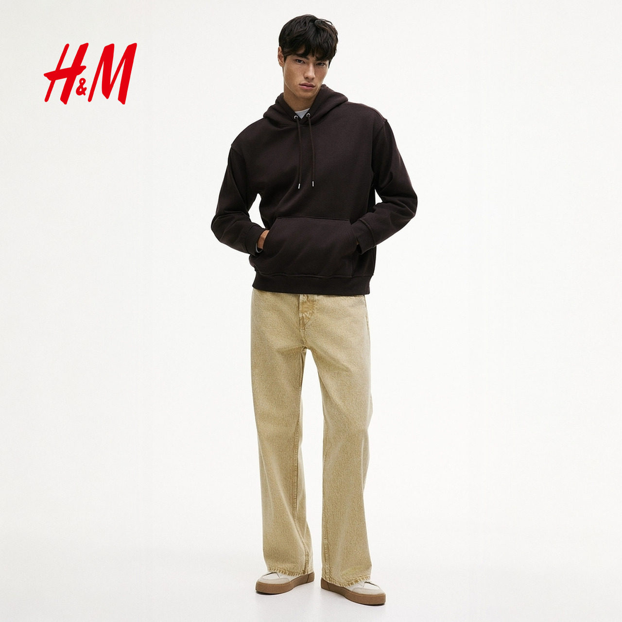 天猫HM男装女装卫衣春季落肩宽松加绒保暖宽松美式情侣连帽衫0970819