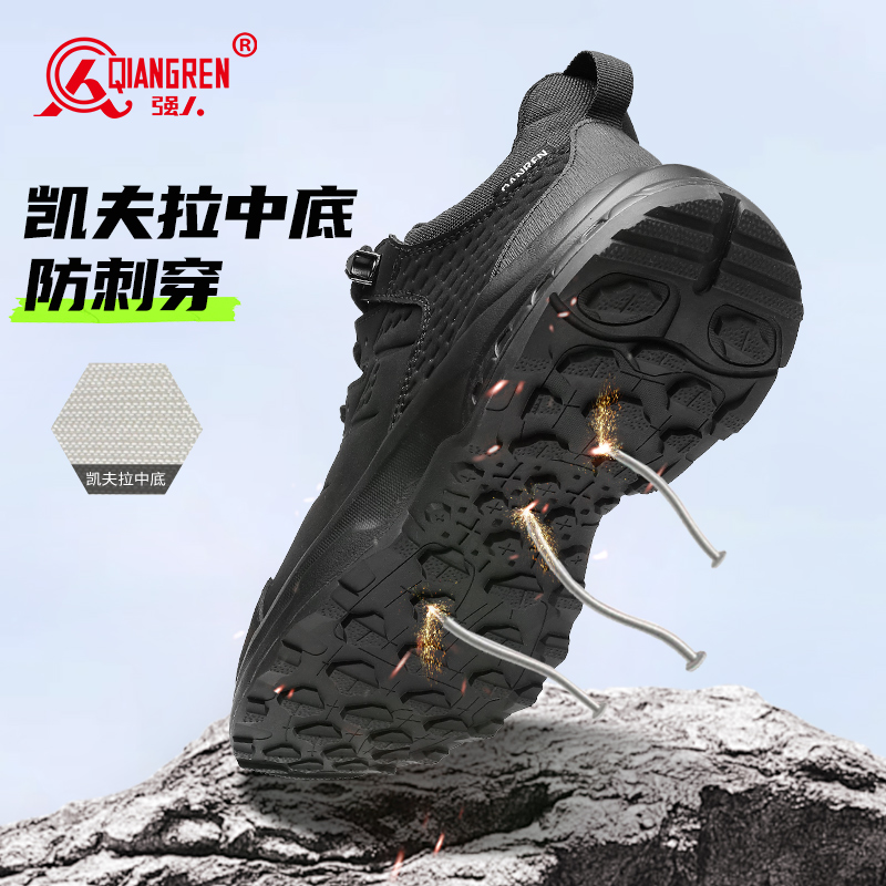 天猫强人3515春秋男鞋户外训练鞋黑色防刺穿战术鞋徒步登山鞋通勤耐磨