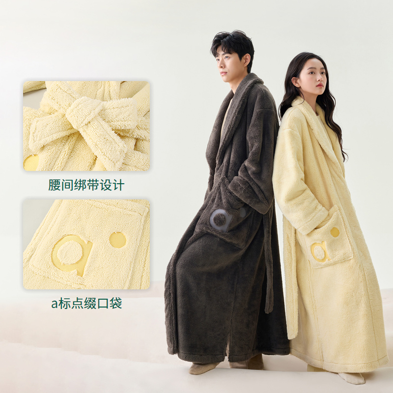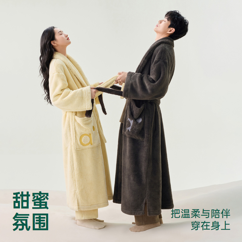 【暖暖绒】红豆居家珊瑚绒情侣睡袍连帽可外穿睡衣家居服加厚冬季