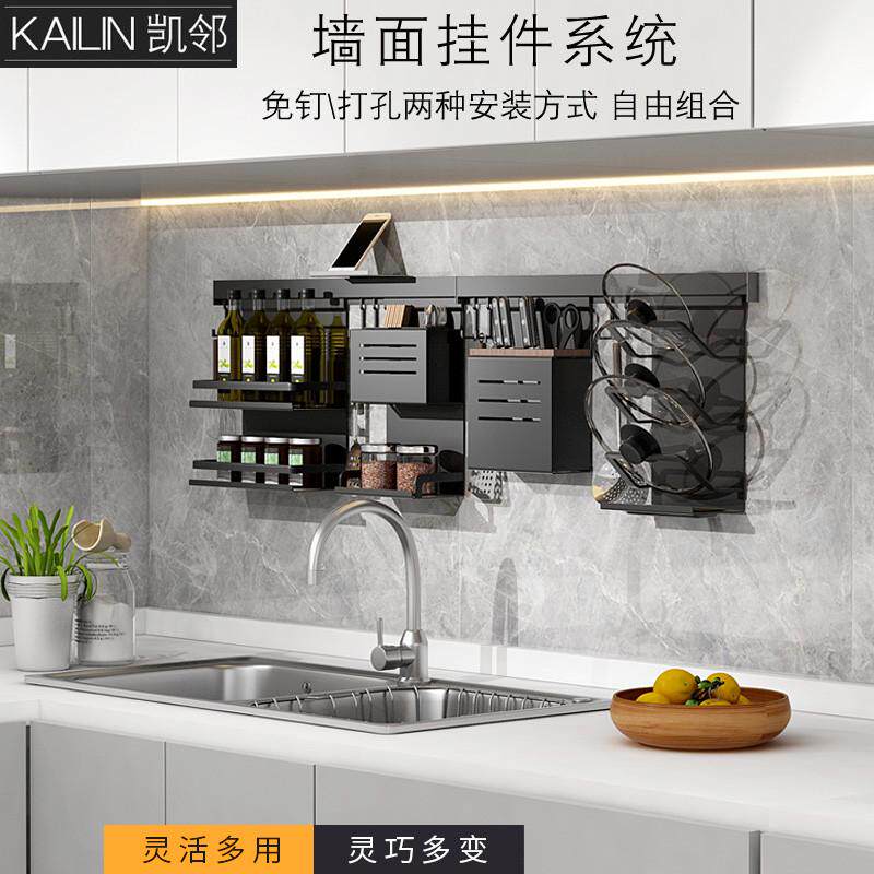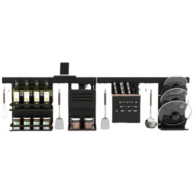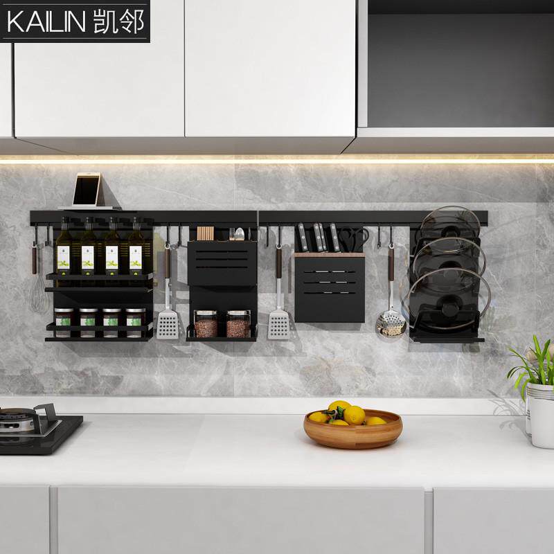 淘宝黑色太空铝墙上厨房置物架套装挂件挂调味料厨房杆壁挂厨卫刀架架