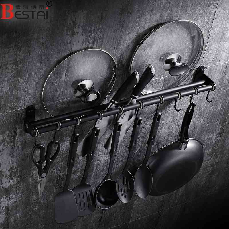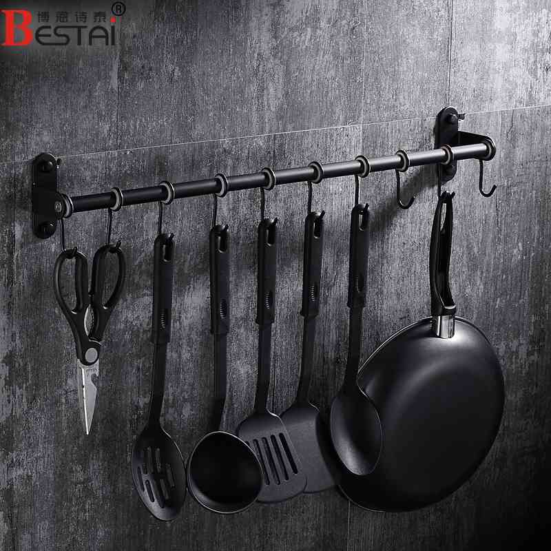 淘宝304不锈钢黑色厨房置物架厨具五金厨卫挂钩挂件挂架挂杆免打孔壁