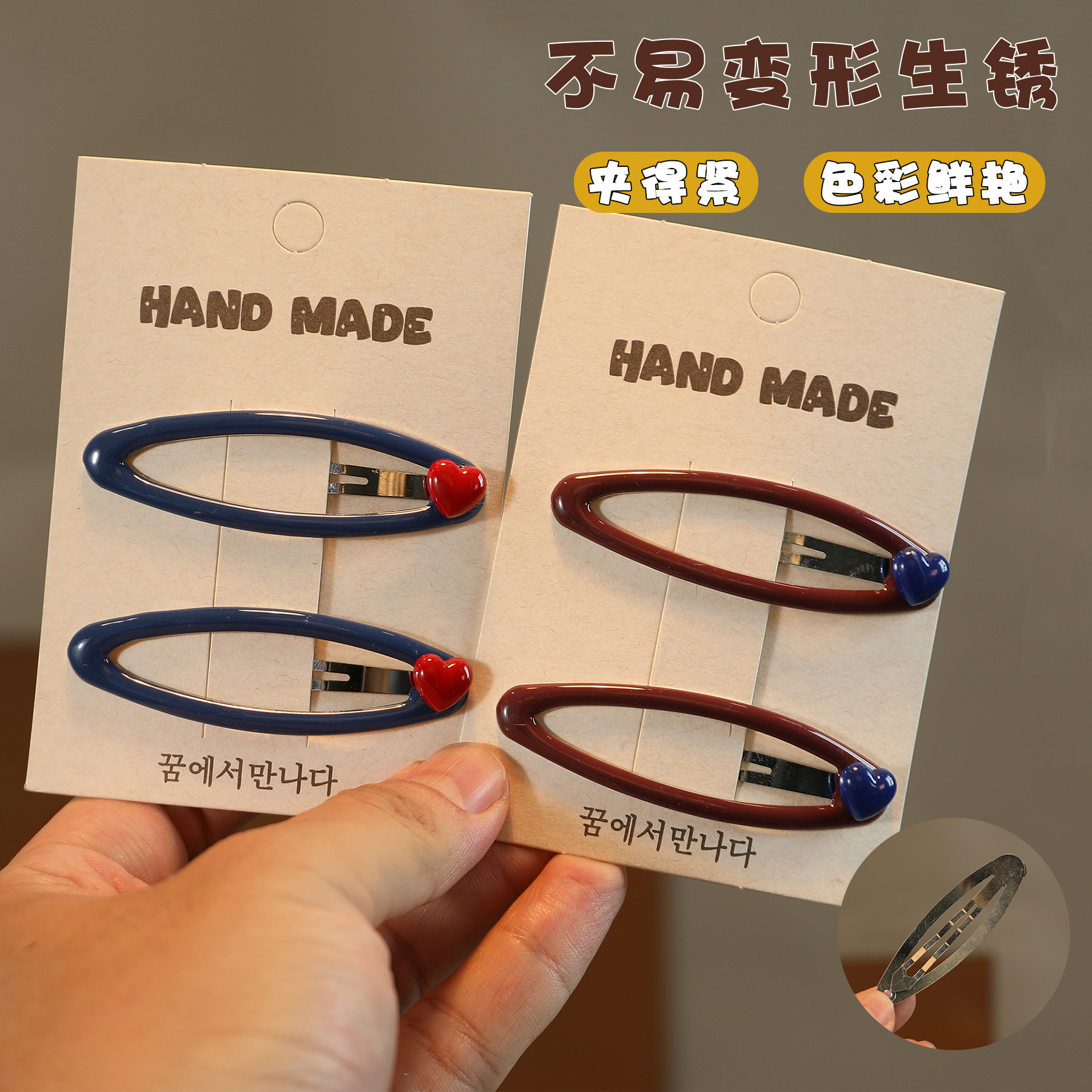 这款儿童小桃心镂空BB夹发夹,专为女童设计,甜美可爱,是点缀发型的新款头饰。采用精致镂空桃心造型,轻盈小巧,佩戴舒适不伤发。适用于前额刘海固定、侧边夹发或搭配编发,轻松打造清新公主风。一字夹设计稳固实用,弹力适中,适合各种发质。材质安全环保,边缘光滑无毛刺,呵护宝宝娇嫩头皮。多色可选,搭配裙子、发带更显活泼俏皮。无论是日常上学、出游还是参加派对,都是小女孩必备的发饰单品,让宝贝时刻闪耀童真魅力。