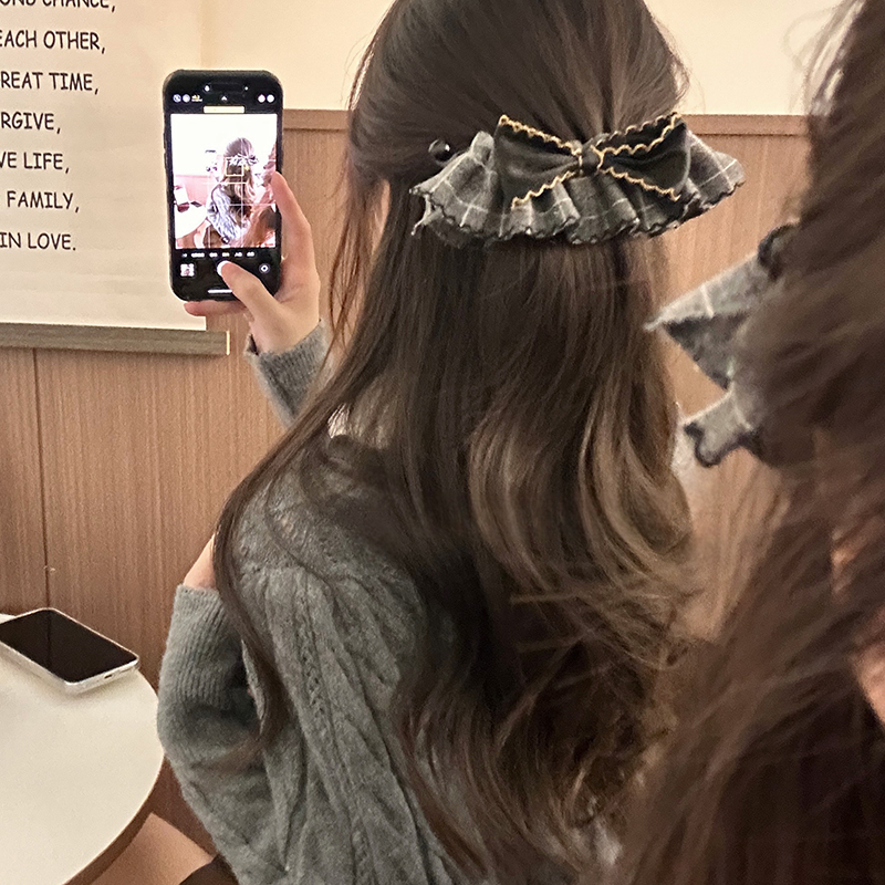 天猫美拉德裙摆蝴蝶结香蕉夹女半扎发卡气质马尾夹后脑勺盘发竖夹头饰