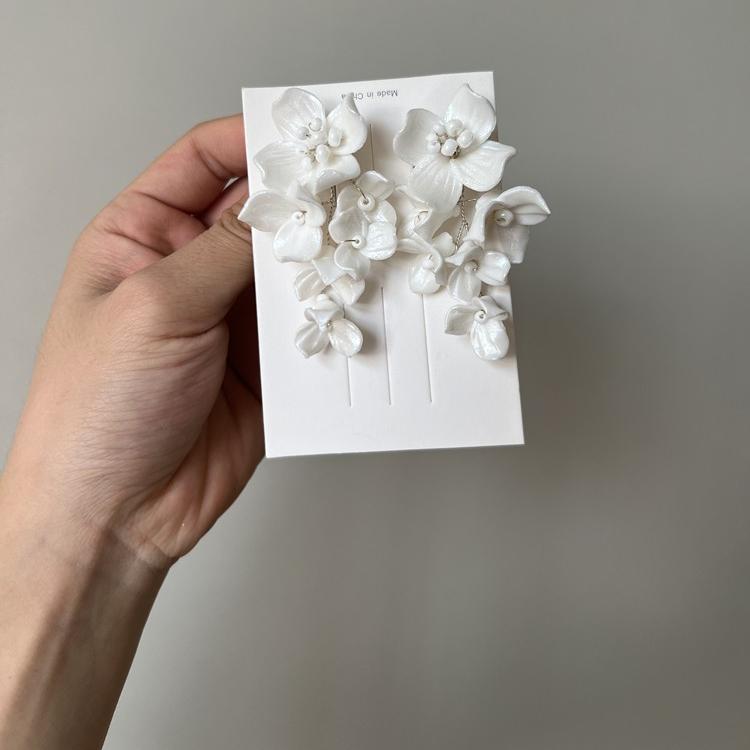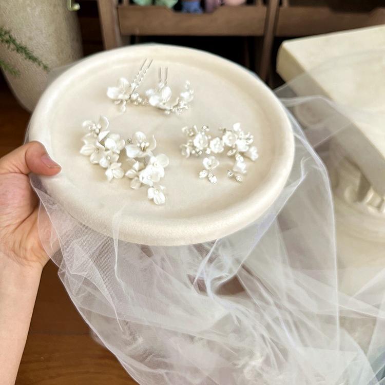 淘宝珠光花朵浪漫首饰新娘夸张耳夹发饰配饰发叉发簪唯美陶瓷花朵配饰