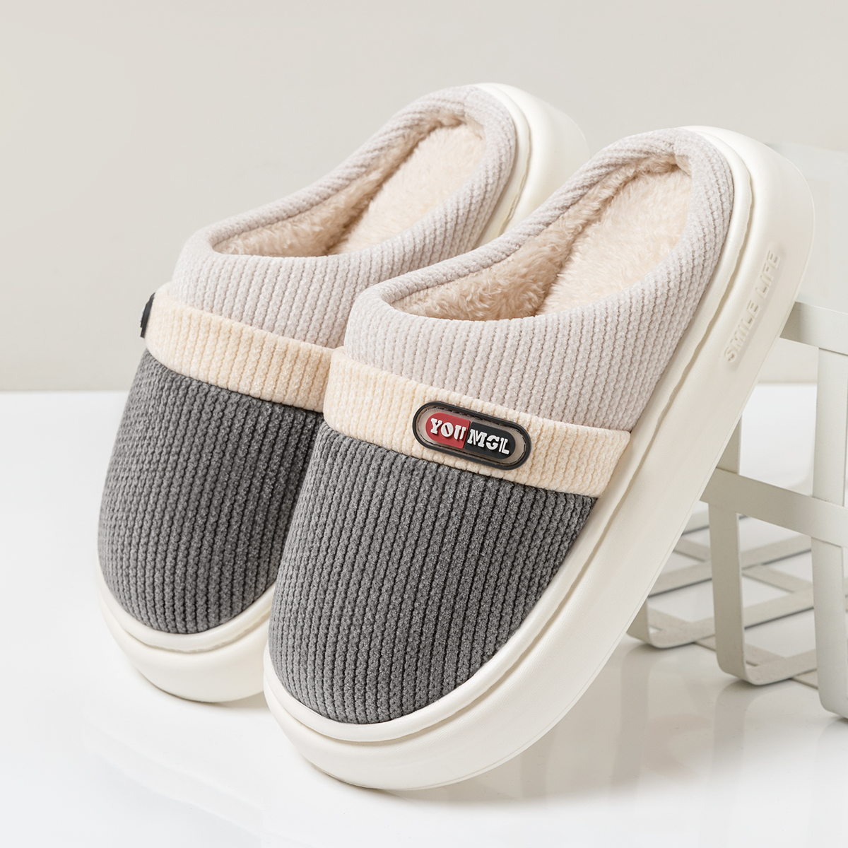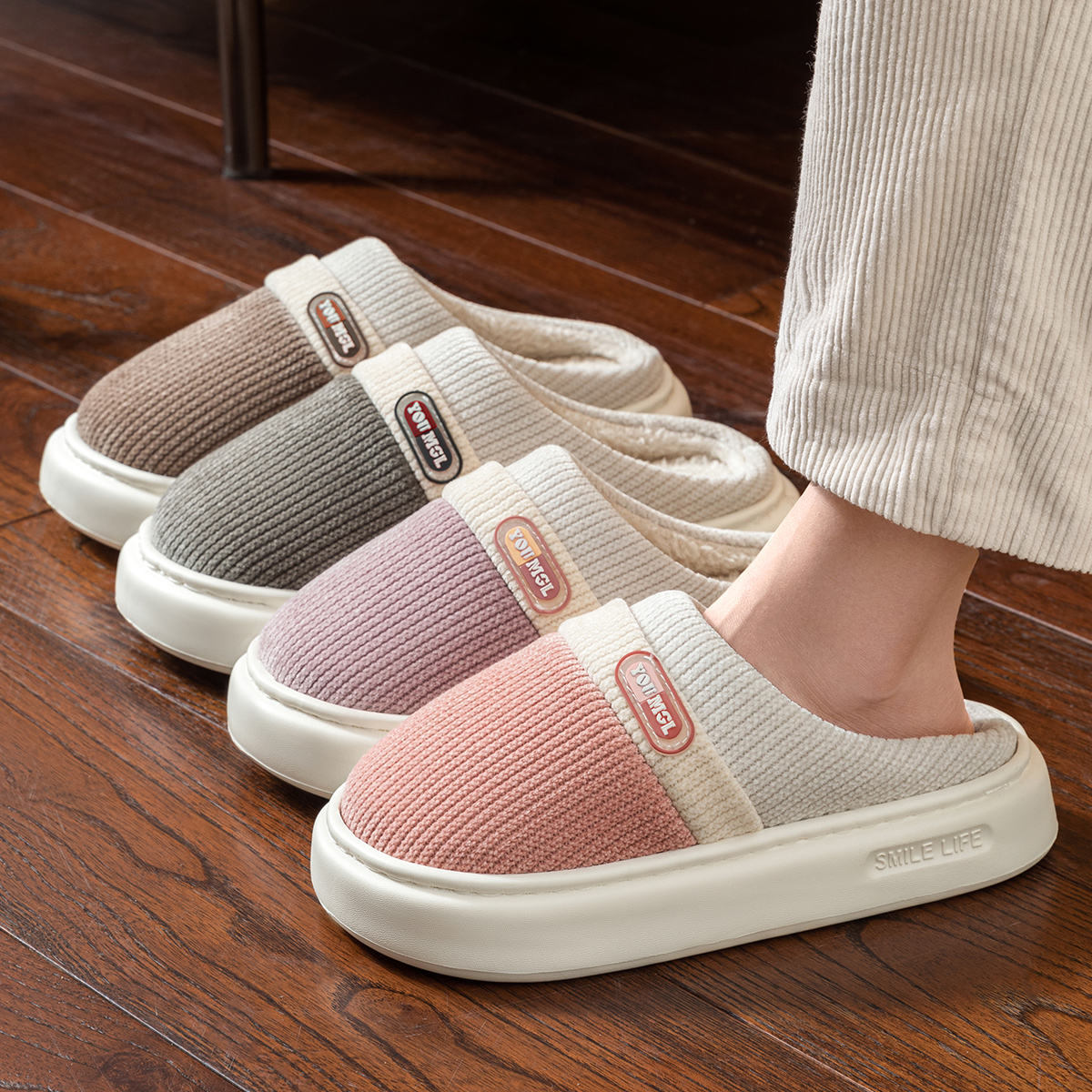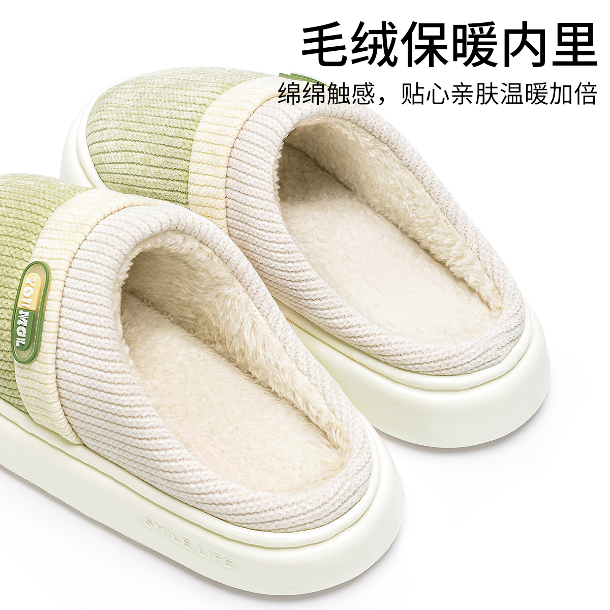 新款舒乐佳棉拖鞋女冬季居家室内厚底防滑保暖毛绒情侣拖鞋男外穿