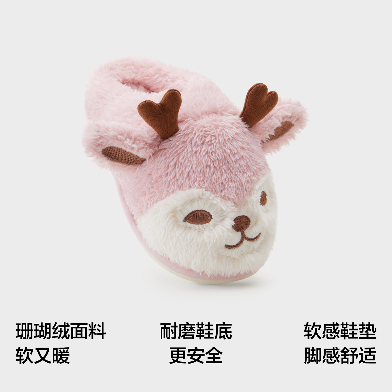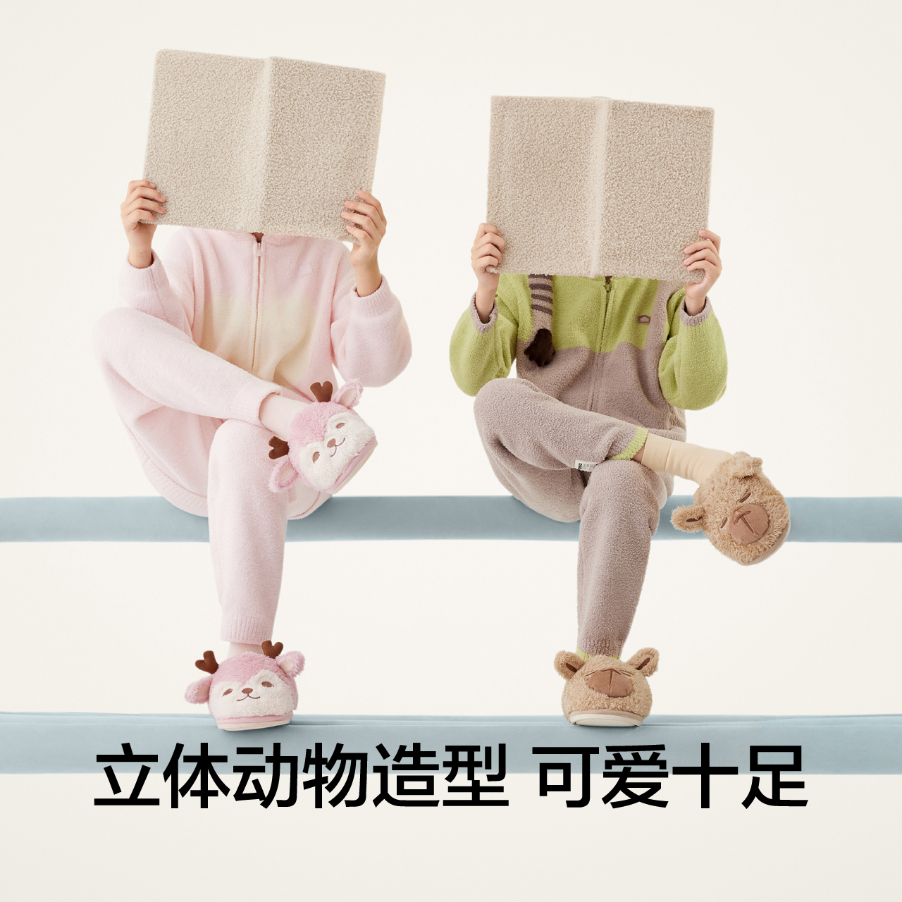 天猫蕉内绒绒520Home男女童家居拖鞋珊瑚绒防滑柔软动物主题纯色拖鞋