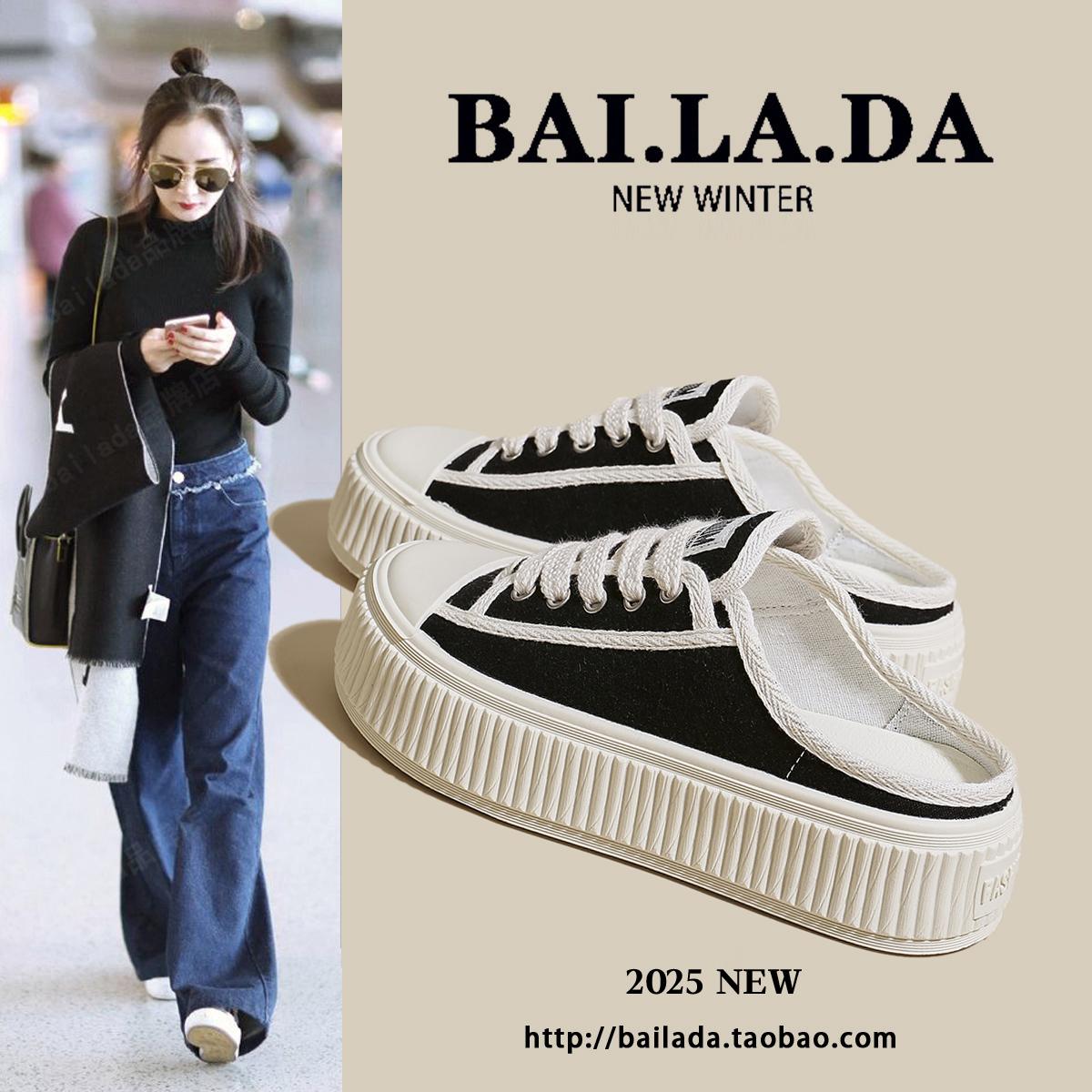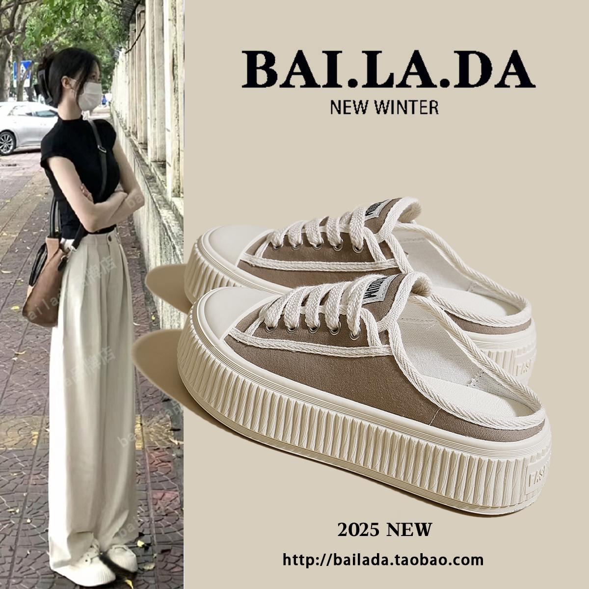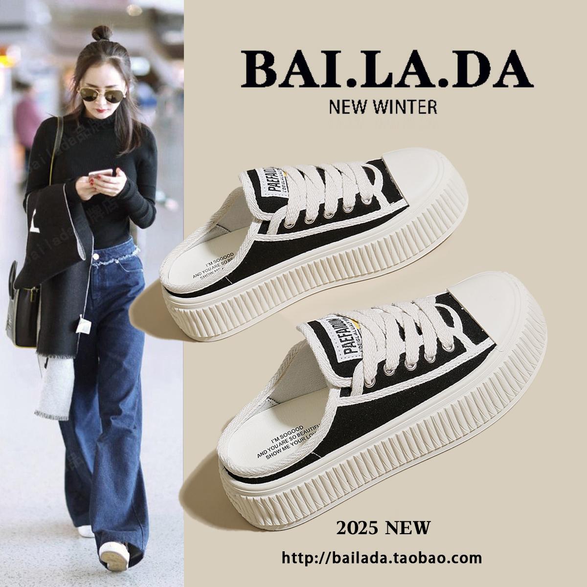 淘宝爆款增高厚底包头半拖鞋女款外穿2025年夏日夏季新款帆布凉拖鞋子