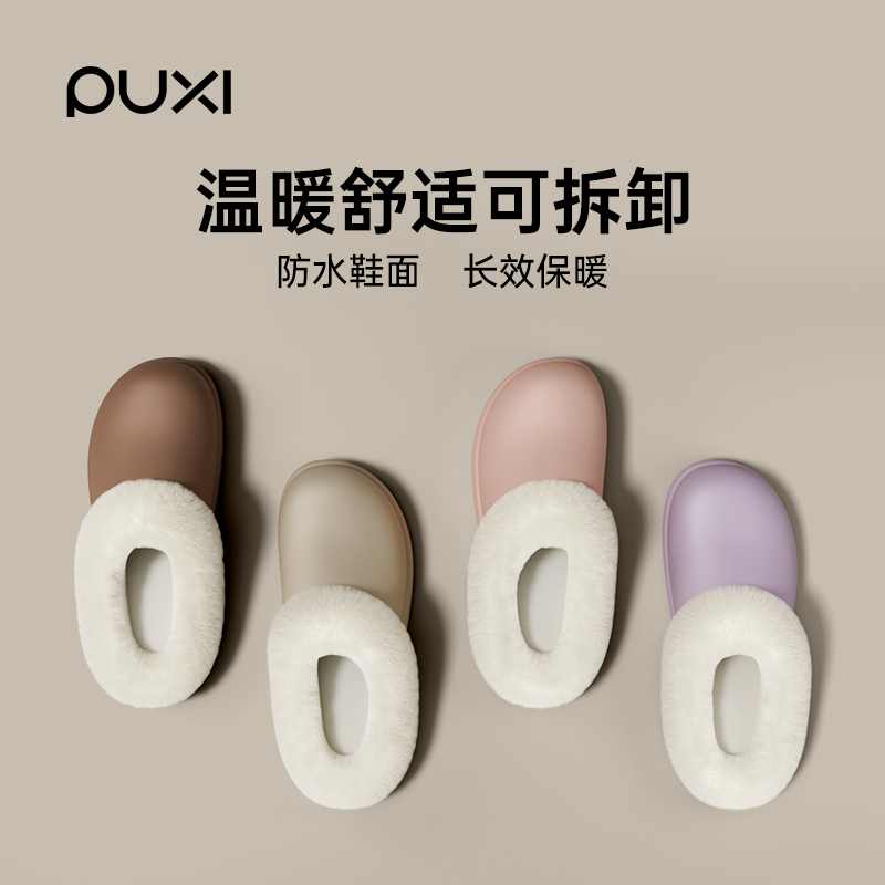 天猫朴西防水棉拖鞋女冬季加厚厚底防滑外穿防污保暖2025新款勃肯棉鞋