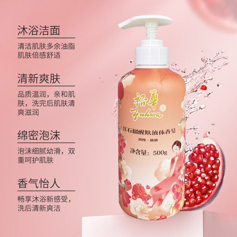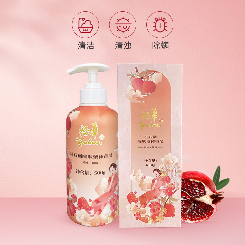 天猫裕华红石榴液体香皂沐浴露苦参除螨抑菌清洁男女士洗澡洗脸洗手液