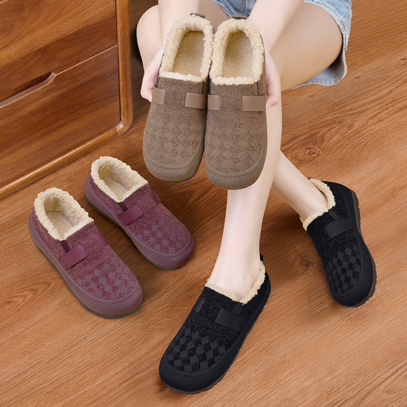 豆豆鞋女冬加绒外穿老北京布鞋一脚蹬新款保暖妈妈软底秋毛毛棉鞋