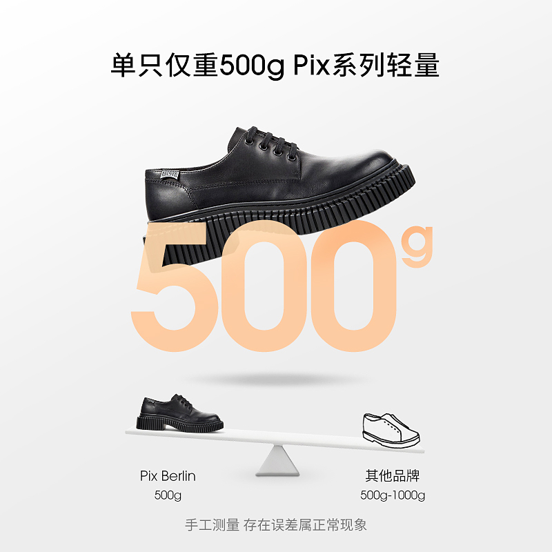 天猫【新品】Camper看步男鞋Pix Berlin黑色经典款系带德比鞋休闲皮鞋
