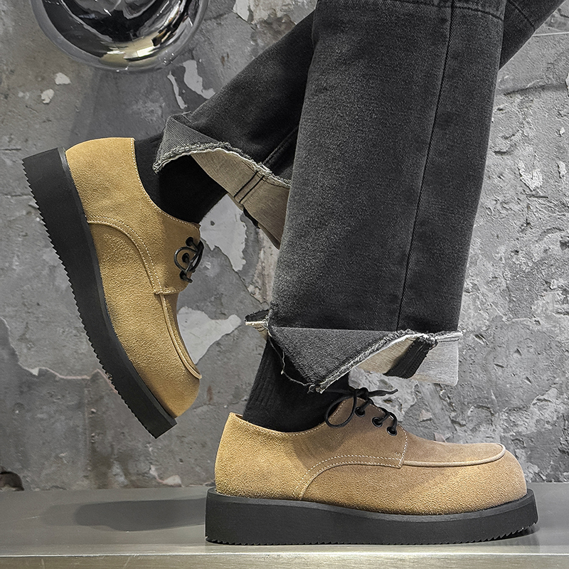 淘宝休闲皮鞋男款2025新款高级感翻毛工作男鞋百搭大头鞋子厚底德比鞋