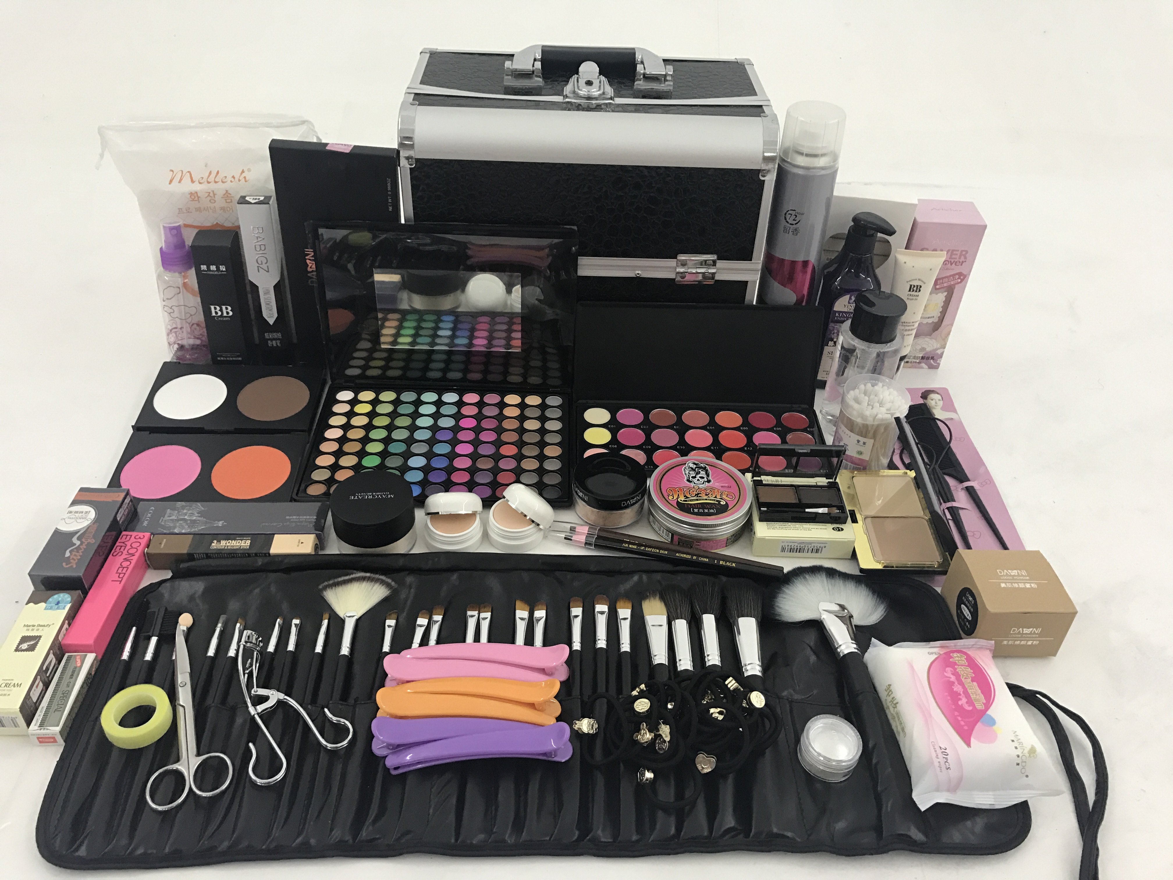 本彩妆套装专为专业化妆师、新娘跟妆、舞台表演、Cosplay爱好者及初学者设计,涵盖全套高品质美妆工具。内含多色眼影盘、持久粉底液、遮瑕膏、腮红、高光修容及专业唇彩,满足日常到舞台的多种妆容需求。搭配优质化妆刷具(粉底刷、眼影刷、腮红刷等)、美妆蛋、睫毛夹及假睫毛,上妆更服帖细腻。产品色彩丰富、显色度高、持妆力强,适用于影楼、婚礼、摄影及舞台演出。包装精美便携,既是专业化妆师的理想之选,也适合初学者系统学习美妆技巧,轻松打造精致妆容,展现自信魅力。