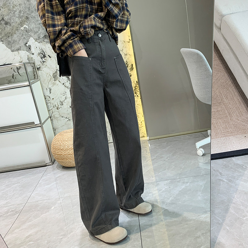 灰色阔腿工装裤女春季新款胖mm大码宽松梨型身材显瘦直筒牛仔裤子