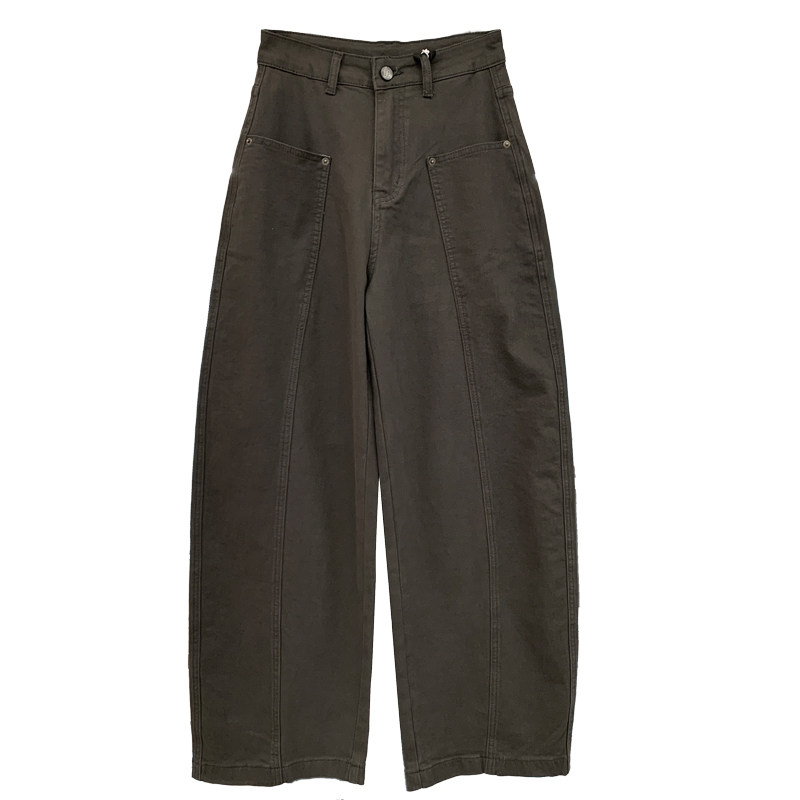 淘灰色阔腿工装裤女春季新款胖mm大码宽松梨型身材显瘦直筒牛仔裤子