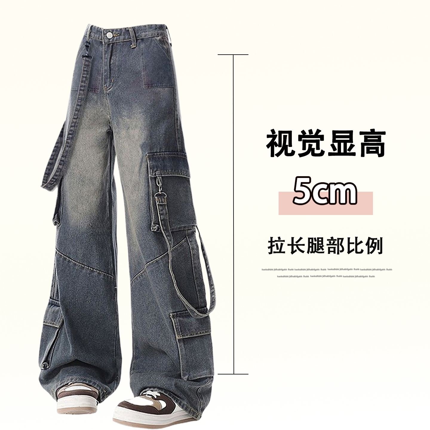 淘饭饭又饿了复古水洗工装牛仔裤女秋季款垂感阔腿百搭直筒显瘦裤子