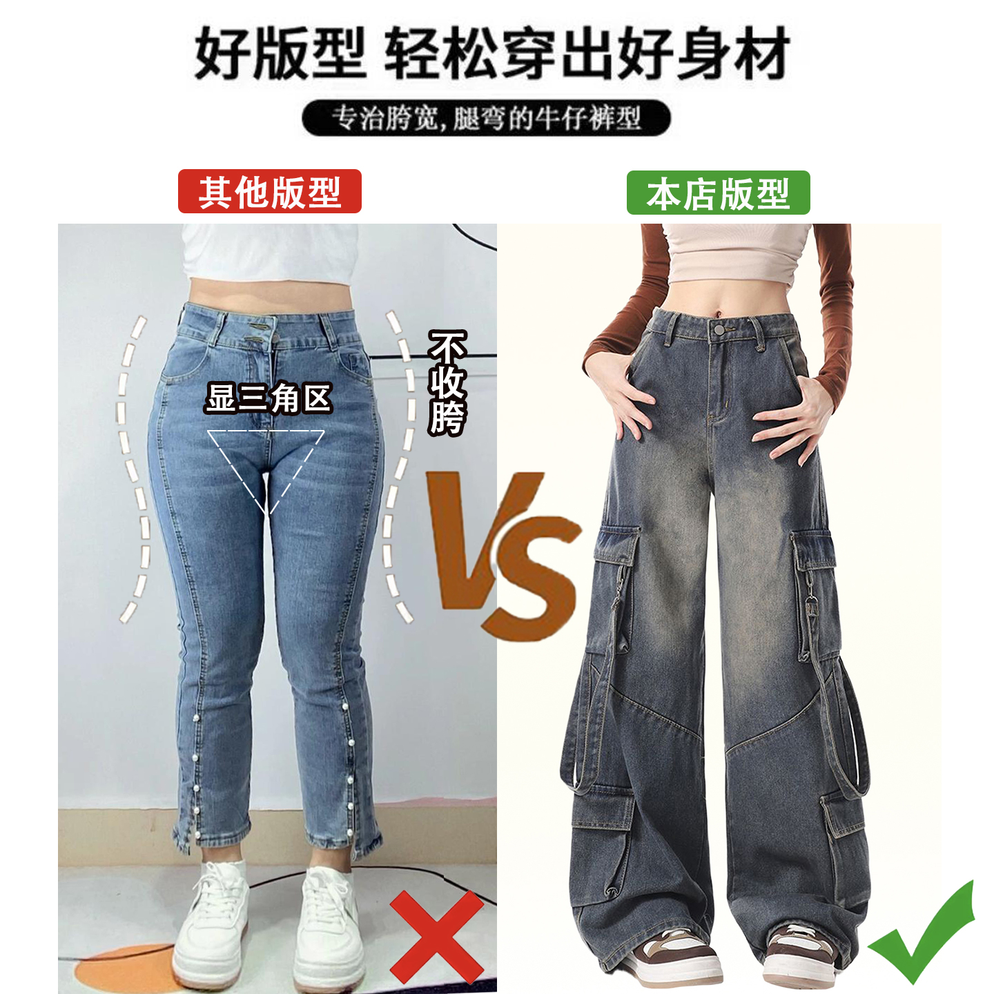淘巧妙分割线!巨显瘦工装弯刀裤女2025新款宽松慵懒阔腿拖地牛仔裤