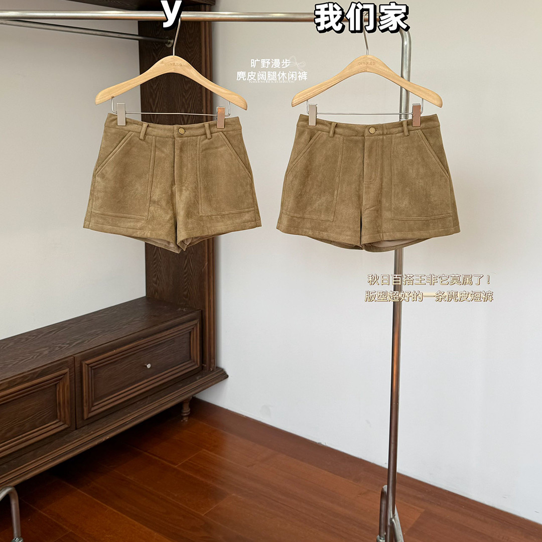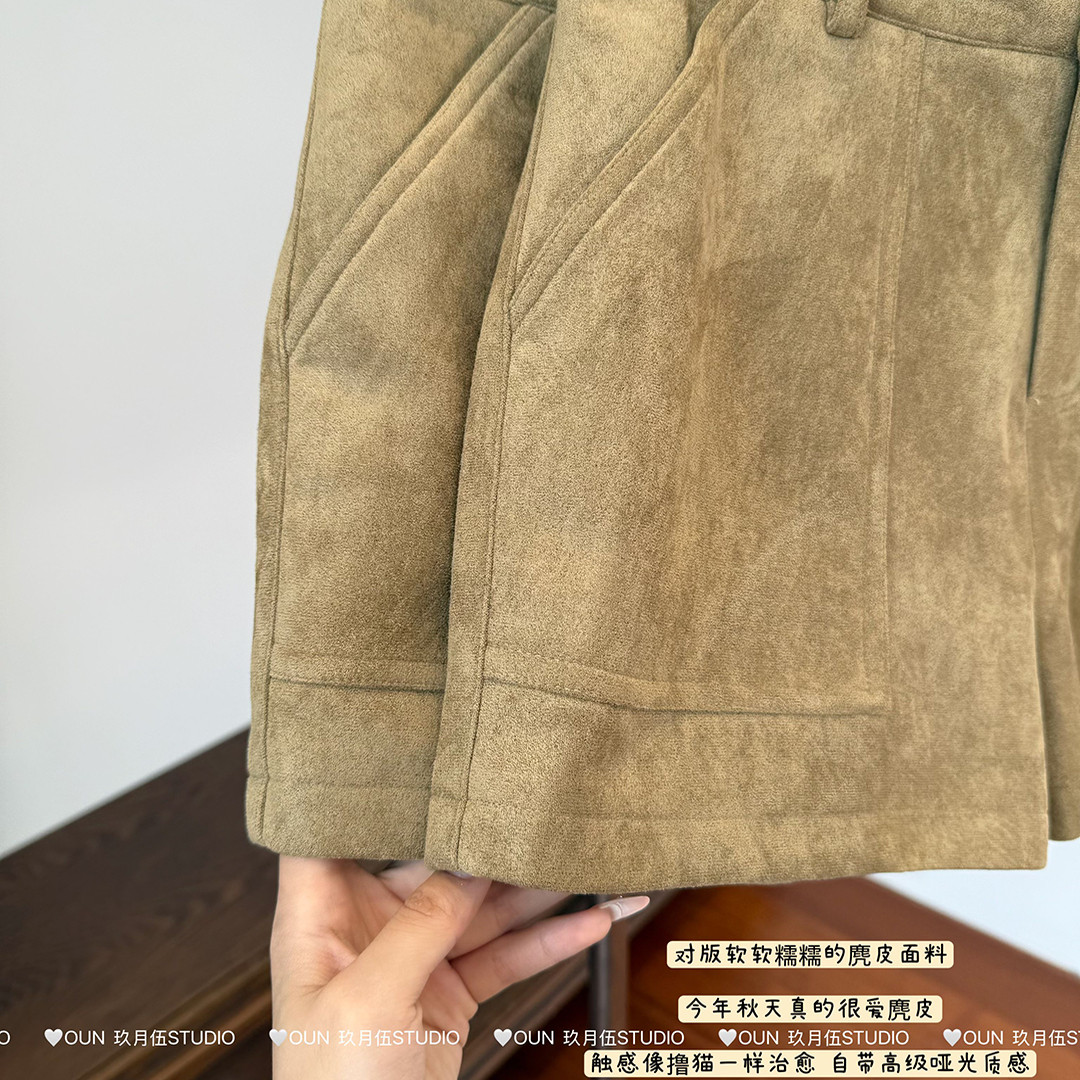 淘宝复古通勤风卡其色麂皮阔腿短裤女秋冬新款大口袋高级感辣妹工装裤