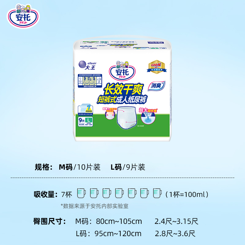 天猫大王安托成人纸尿裤老年人尿不湿长效干爽整箱M/L码8包男女拉拉裤