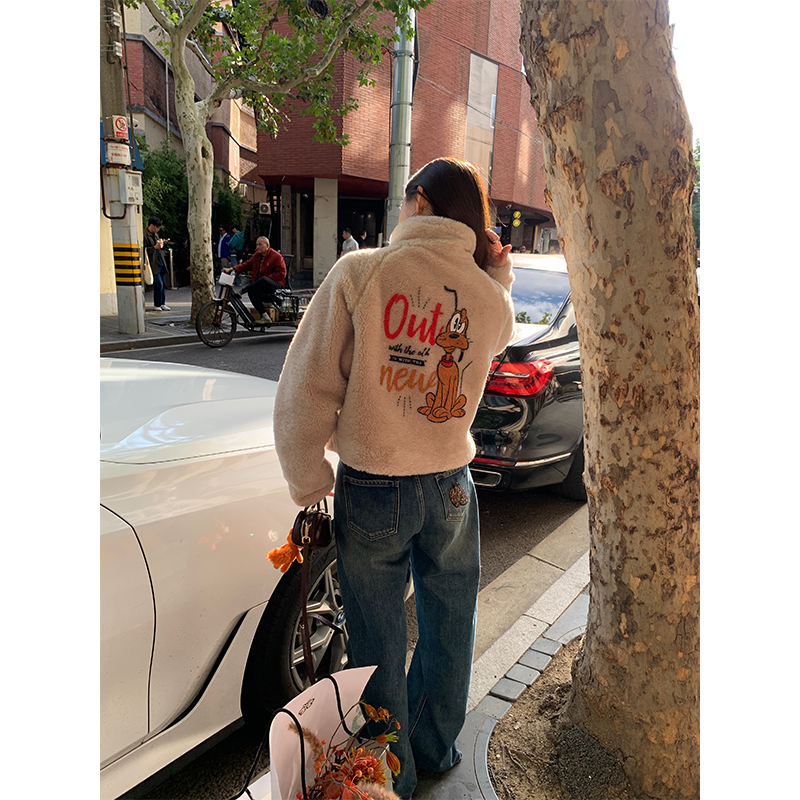 淘宝落落狷介冬季流行风格2025年新款加绒牛仔阔腿裤女小个子刺绣高腰