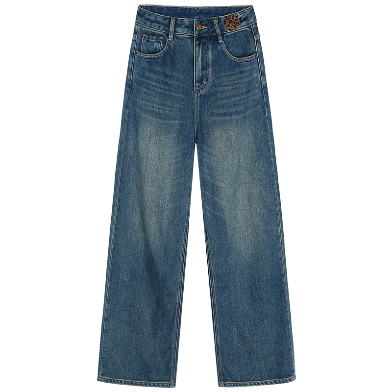 天【100%棉】衣香丽影抓绒弯刀牛仔裤女2025年冬装新款宽松直筒裤子