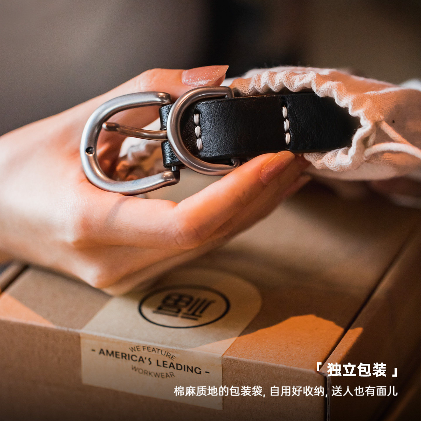淘宝马登复古植鞣头层真牛皮小皮带牛仔裤简约双环装饰细黑色腰带女