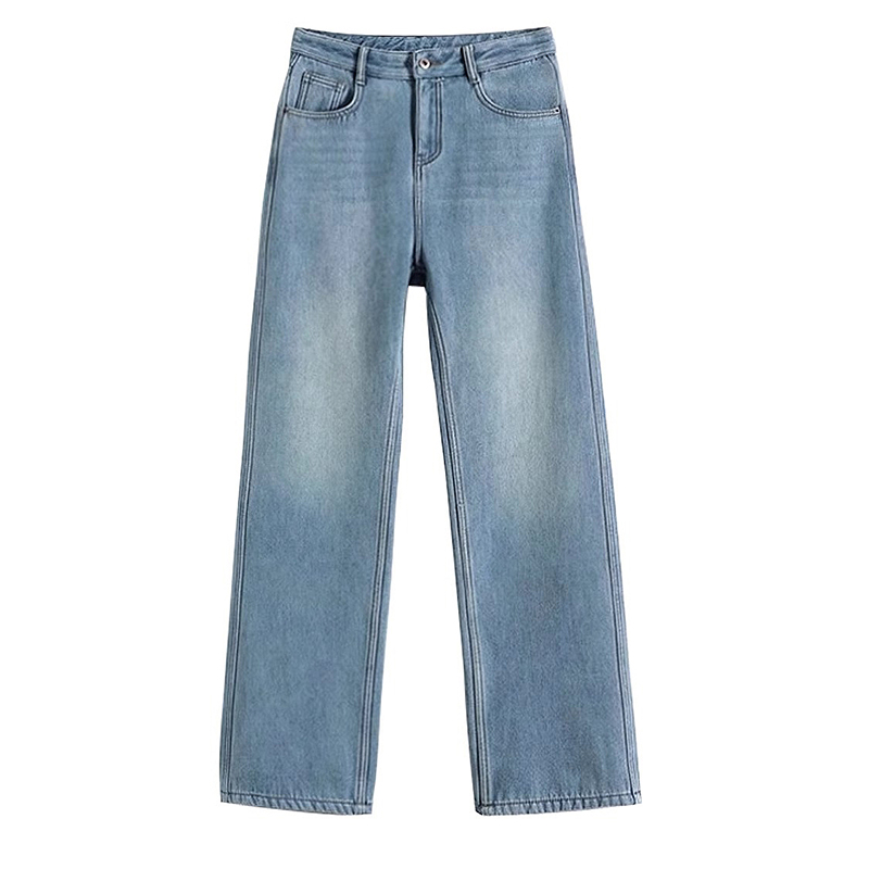 淘宝浅色直筒牛仔裤女秋冬加绒大码胖mm宽松显瘦梨形身材窄版阔腿裤子