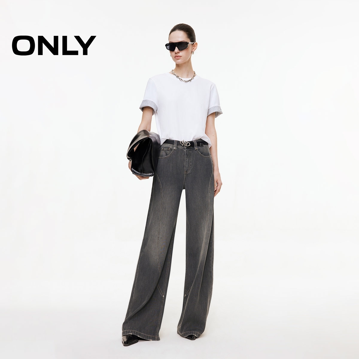 ONLY2025冬季新款修身V字高腰立体剪裁显高长裤喇叭裤牛仔裤女