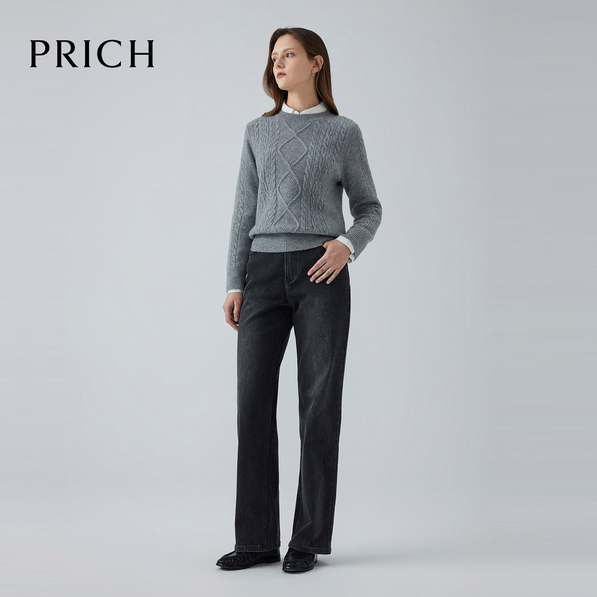 天秋水伊人简约休闲微喇牛仔裤2025年秋冬新款女装小个子九分百搭裤