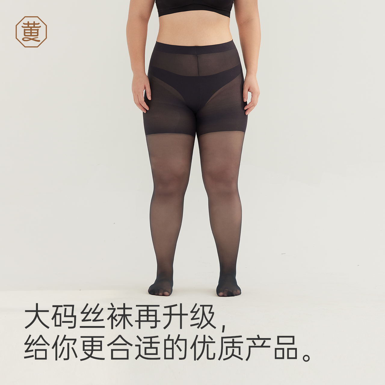 天猫黄小姐10D真大码丝袜胖mm黑丝防磨腿春秋高弹加大不掉裆美肤灰丝