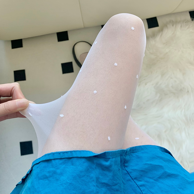 淘宝purple guys辣妹波点黑丝袜女春夏季防晒超薄透气甜美性感jk白丝