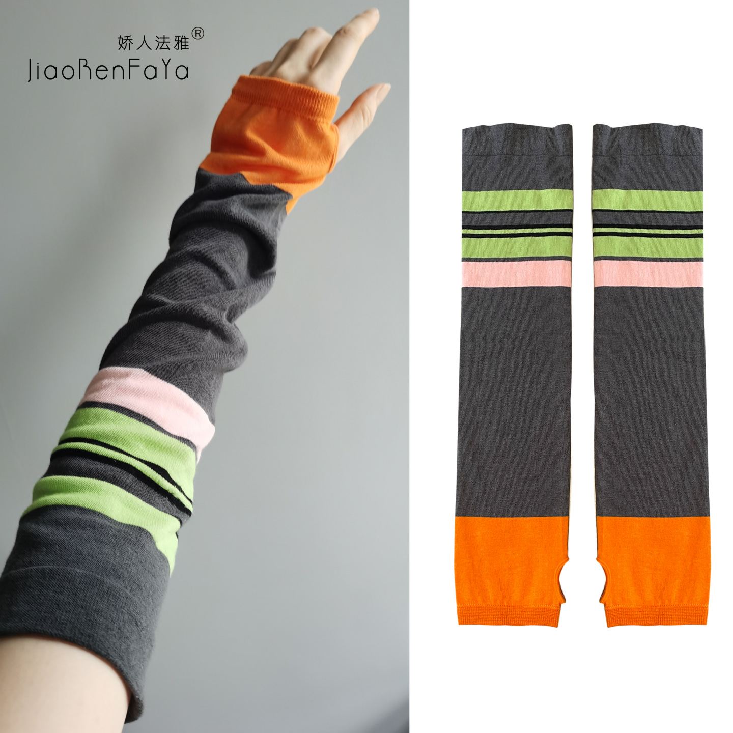 淘宝撞色防晒袖套女高级感护肘薄款条纹宽松长款纯棉空调秋冬保暖袖