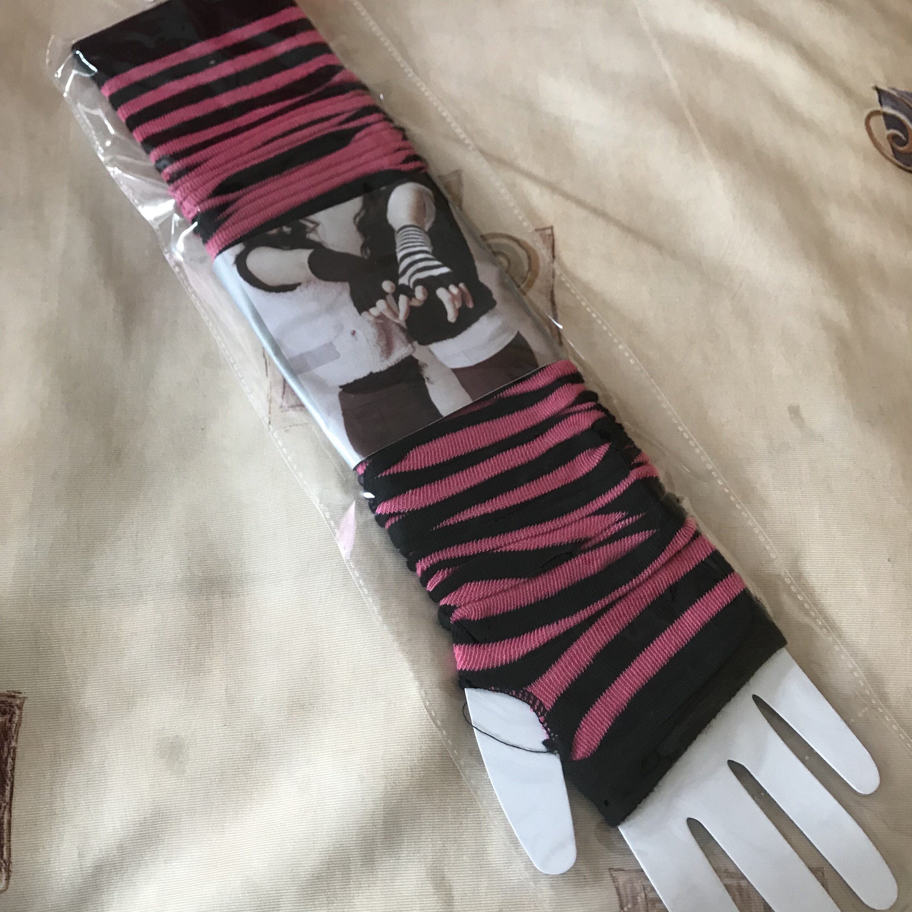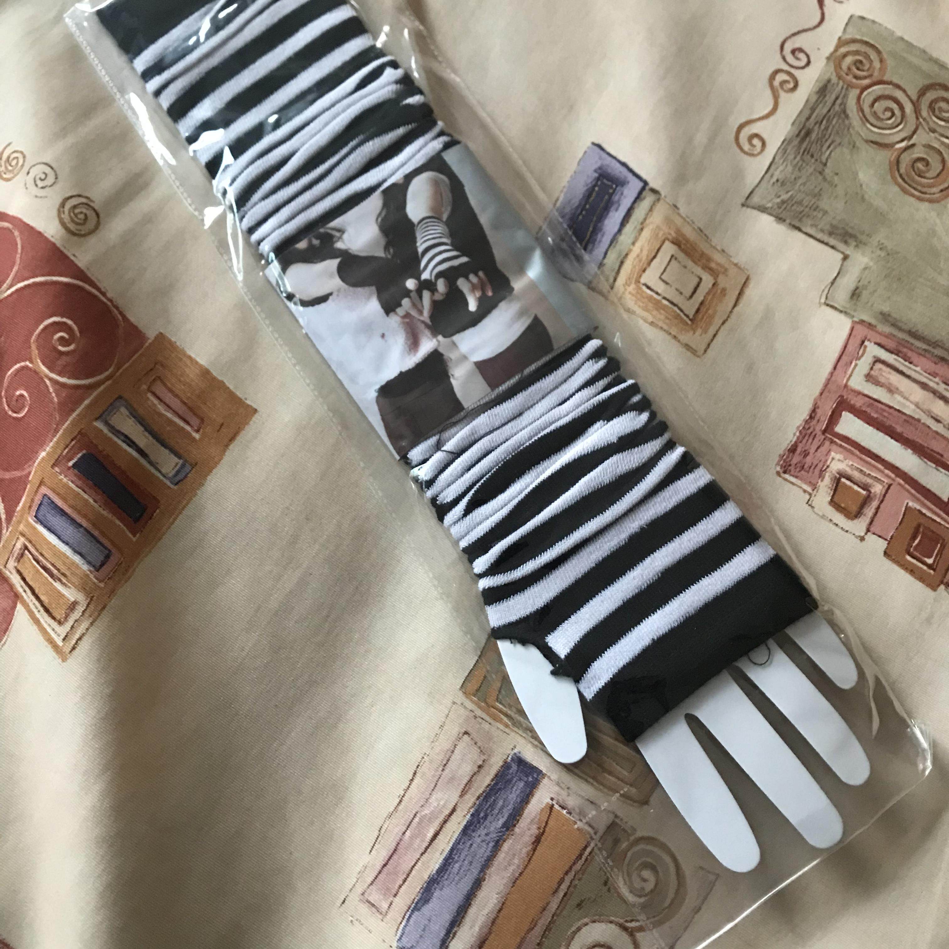 淘宝日系条纹弹力黑白穿指手套原宿暗黑男女款潮半指可爱防晒手袖ins