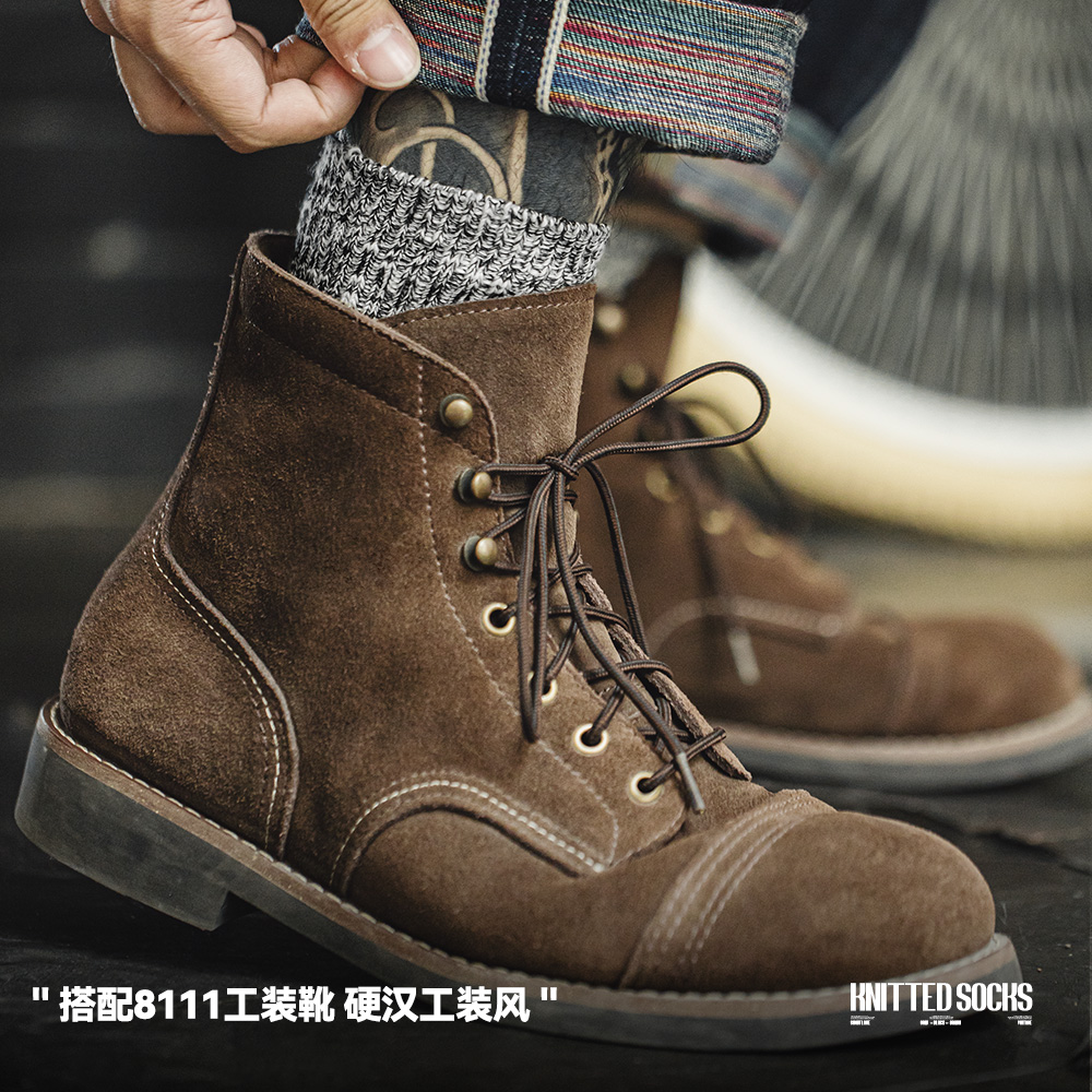 淘宝马登工装美式复古雪花针织中筒棉袜休闲运动吸汗透气长袜子男女秋
