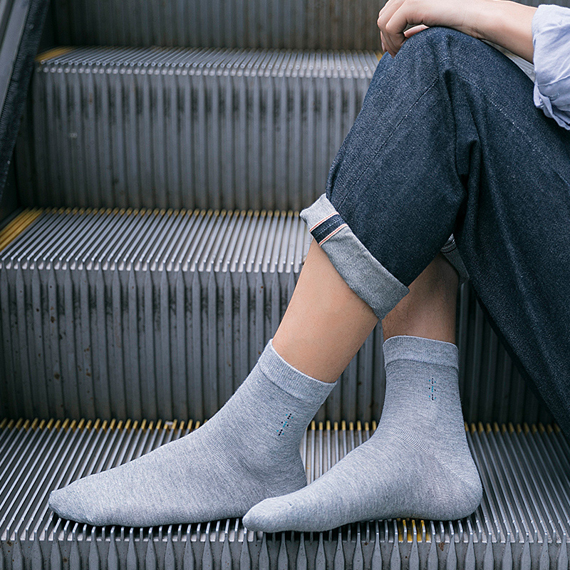 淘浪莎袜子男士纯棉秋冬中筒袜商务休闲款防臭吸汗透气四季棉袜全棉