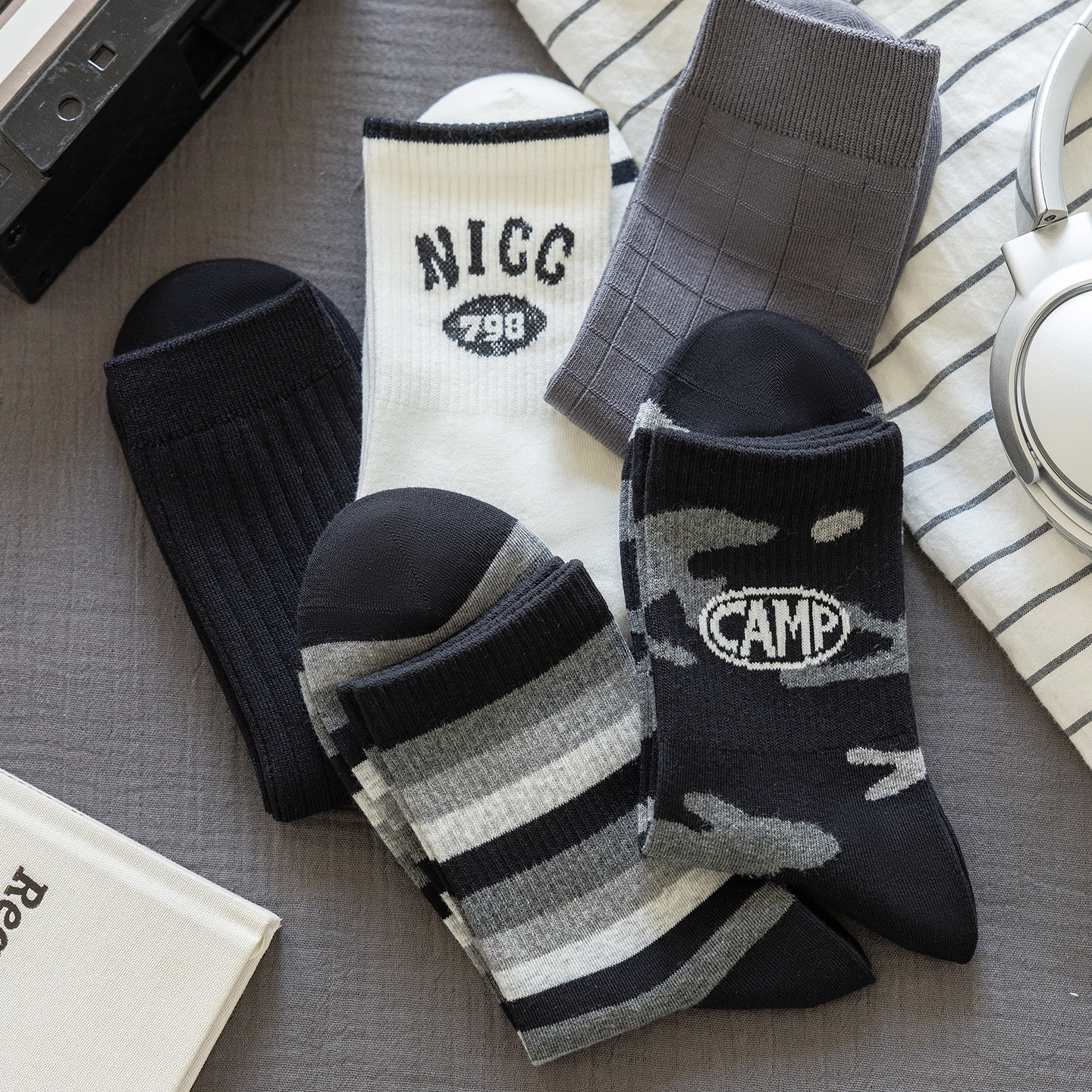 男士精梳长绒棉袜橡筋款中筒袜色纺抗菌防臭商务休闲冬袜子5双装