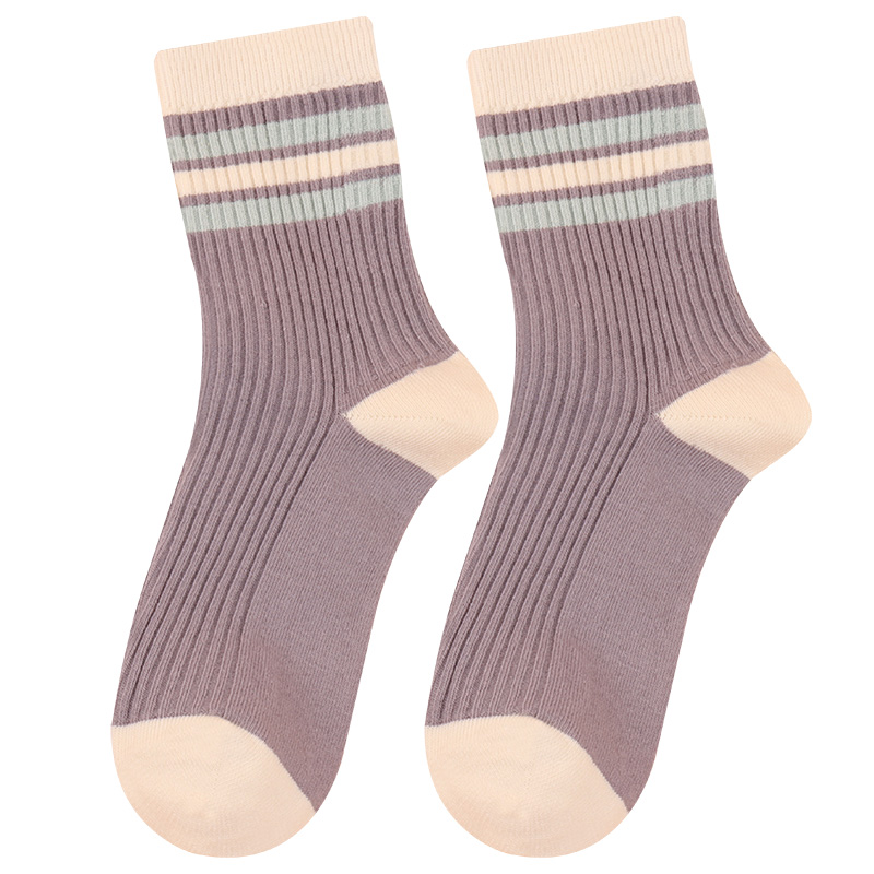 淘宝秋冬天女士加厚中筒棉袜精梳棉双针条纹休闲女袜保暖中长腰不臭脚