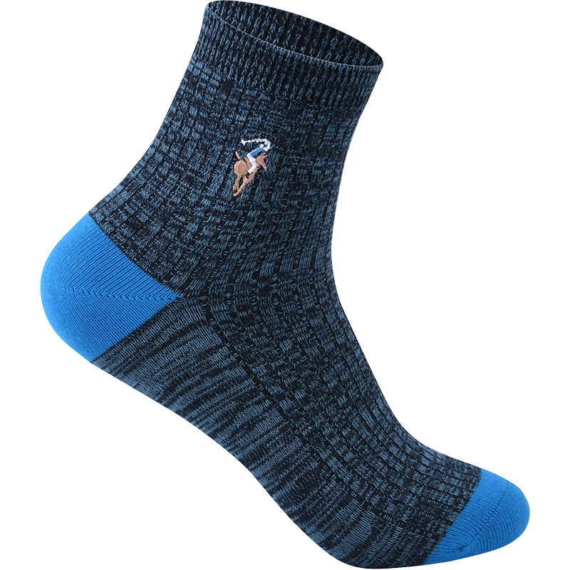 天男士精梳长绒棉袜橡筋款中筒袜色纺抗菌防臭商务休闲冬袜子5双装