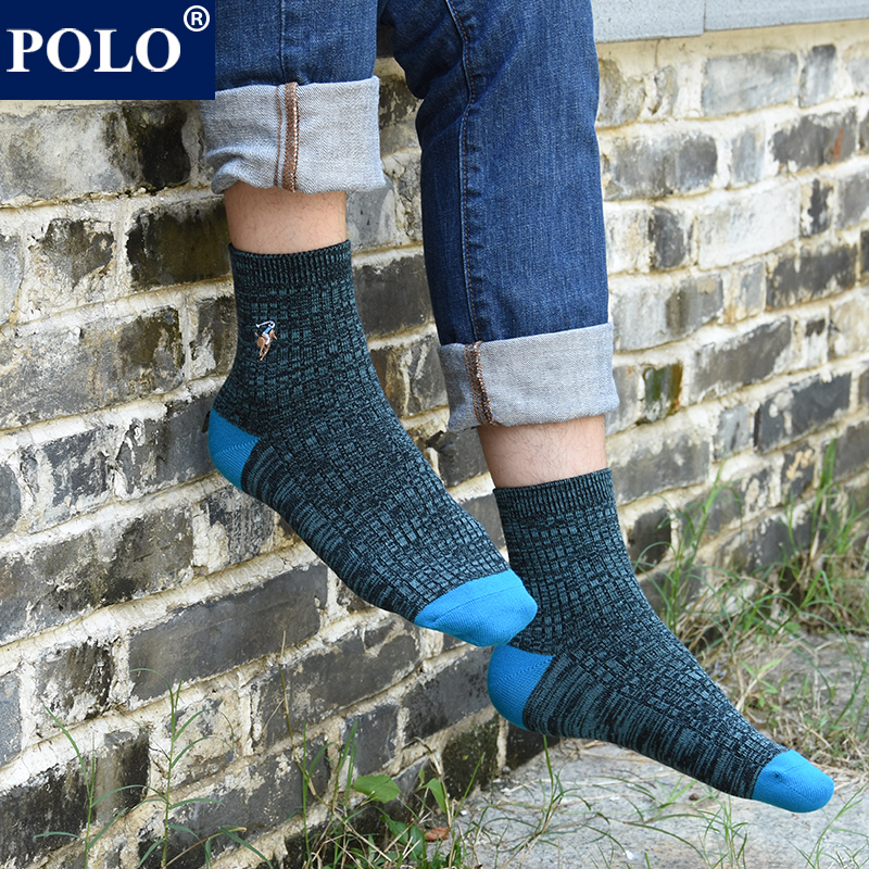 POLO男士商务中筒袜秋四季全棉袜子男中筒袜休闲大码黑色皮鞋长袜