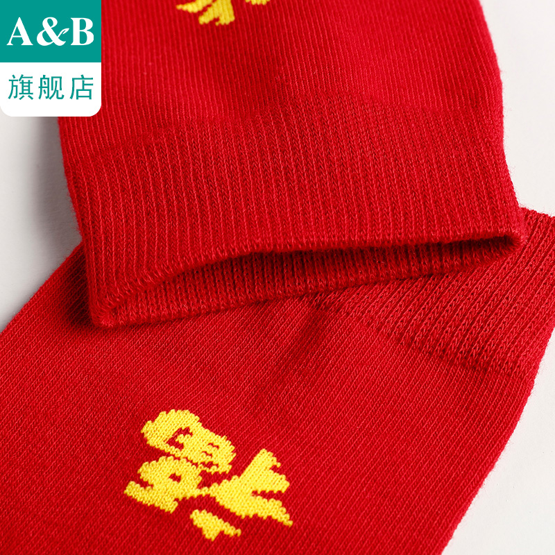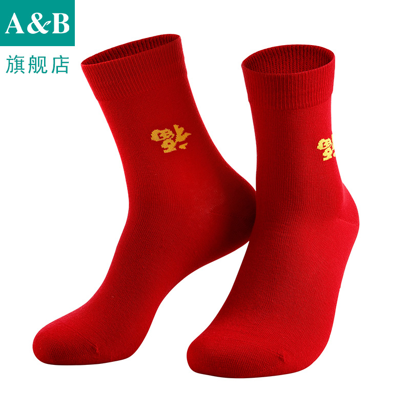 天猫AB袜子女本命年红色女棉袜中筒休闲情侣袜子5641