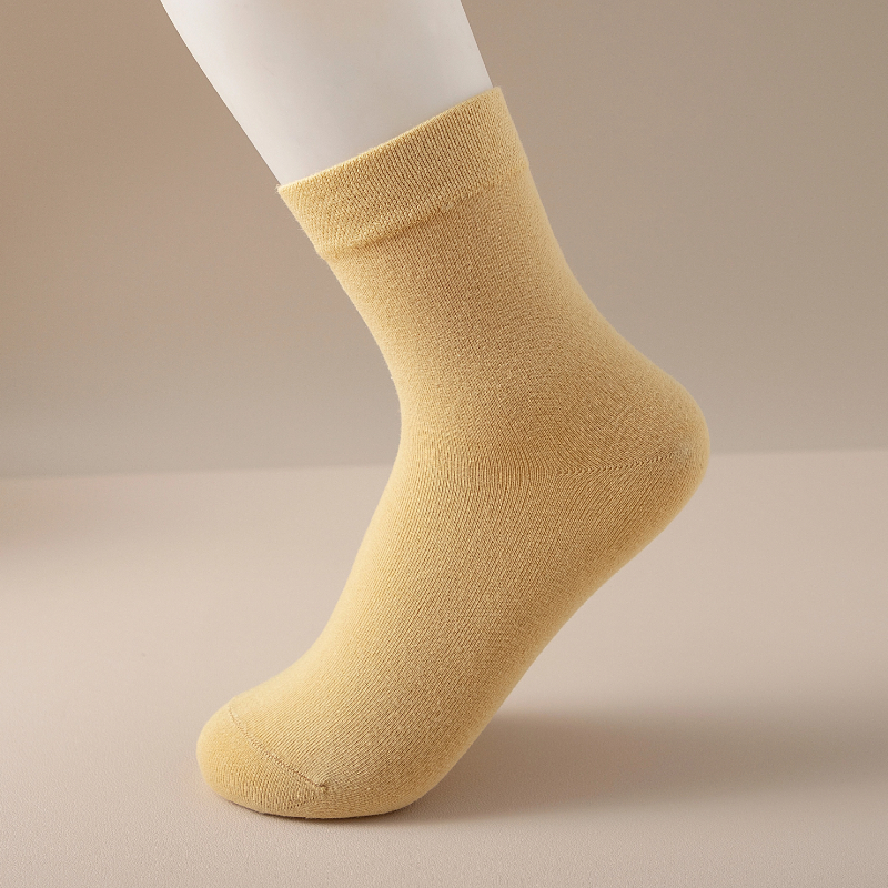 女士精梳长绒棉袜橡筋款中筒袜色纺抗菌中厚秋冬季休闲袜子5双装