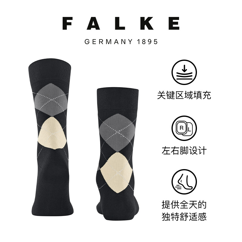 天猫FALKE鹰客德国进口Argyle菱形格休闲棉袜子男女四季贴合舒适12535