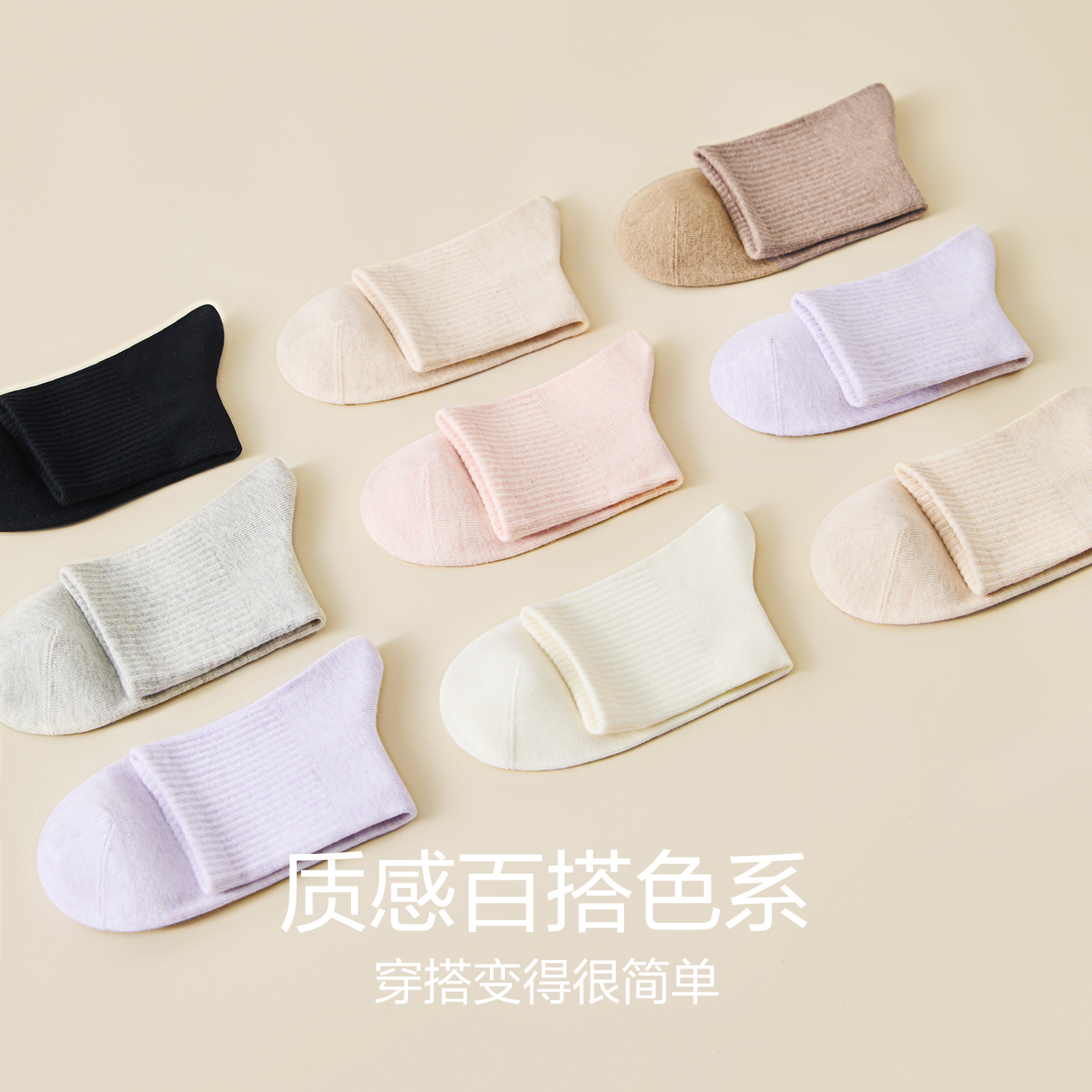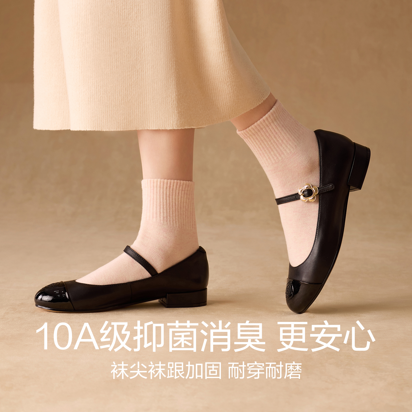 天猫女士精梳长绒棉袜橡筋款中筒袜色纺抗菌中厚秋冬季休闲袜子5双装