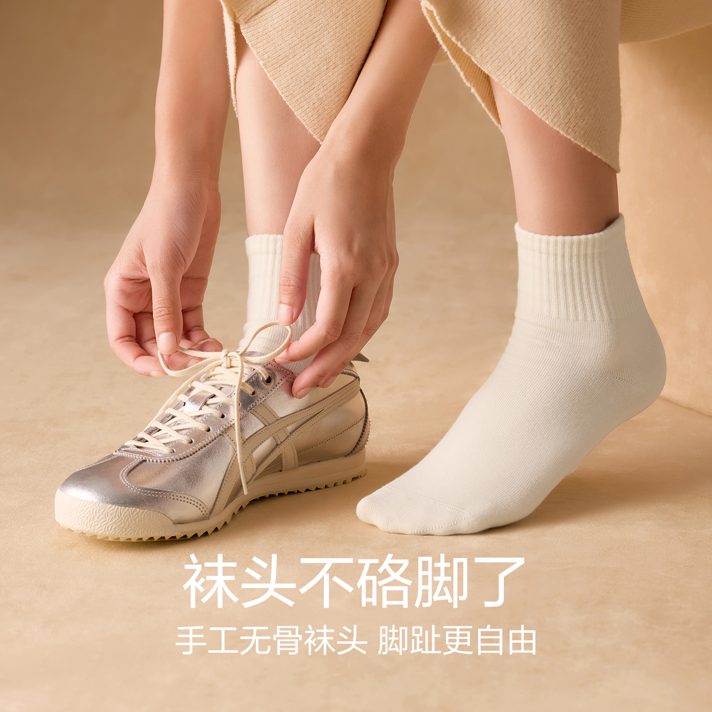 全棉时代袜子男女运动中筒袜短袜5A抗菌吸汗袜情侣休闲袜白色棉袜