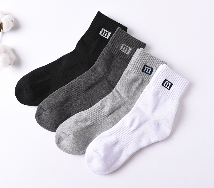 男士秋冬中筒棉袜休闲运动简约纯色棉质男袜子加厚保暖学生袜中长