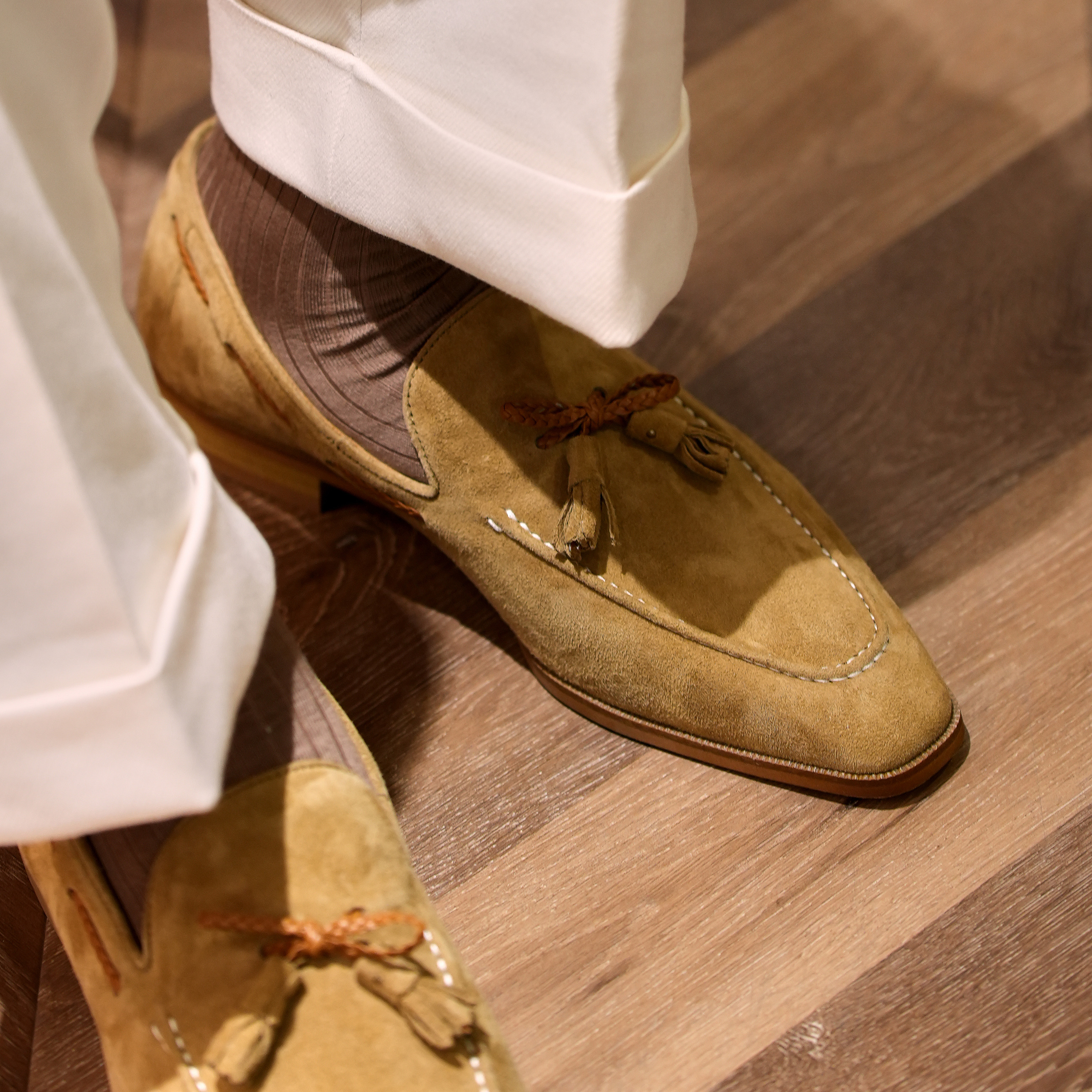 淘宝ZEYIMAKE乐福鞋男款翻毛皮真皮透气英伦男士休闲一脚蹬流苏皮鞋