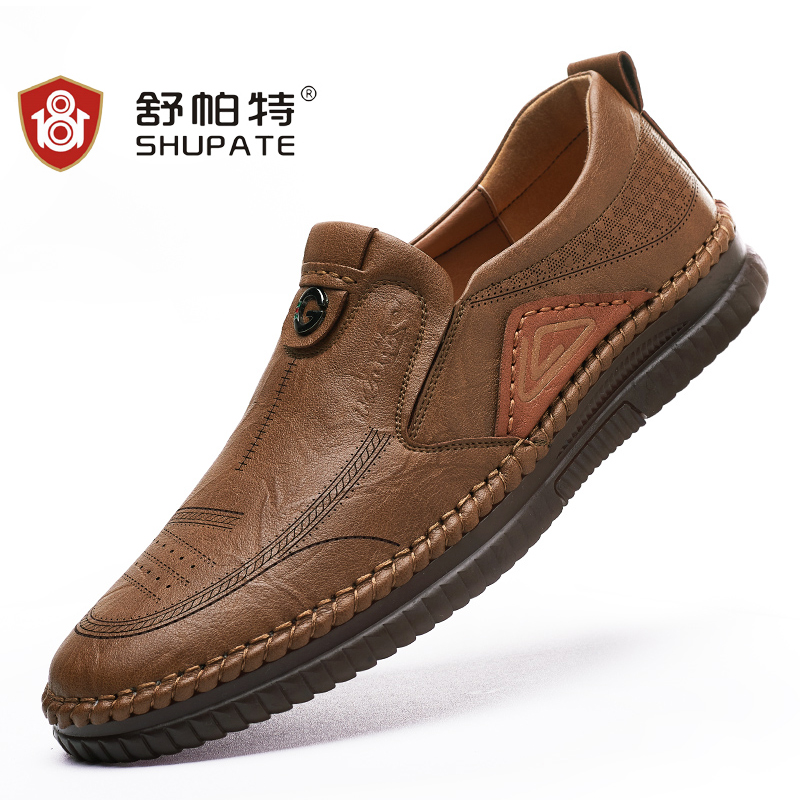 天猫男士休闲透气皮鞋男防滑真皮男鞋牛筋底耐磨软底懒人缝线中年鞋子